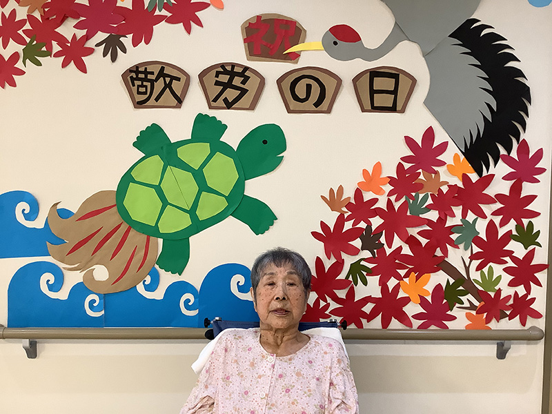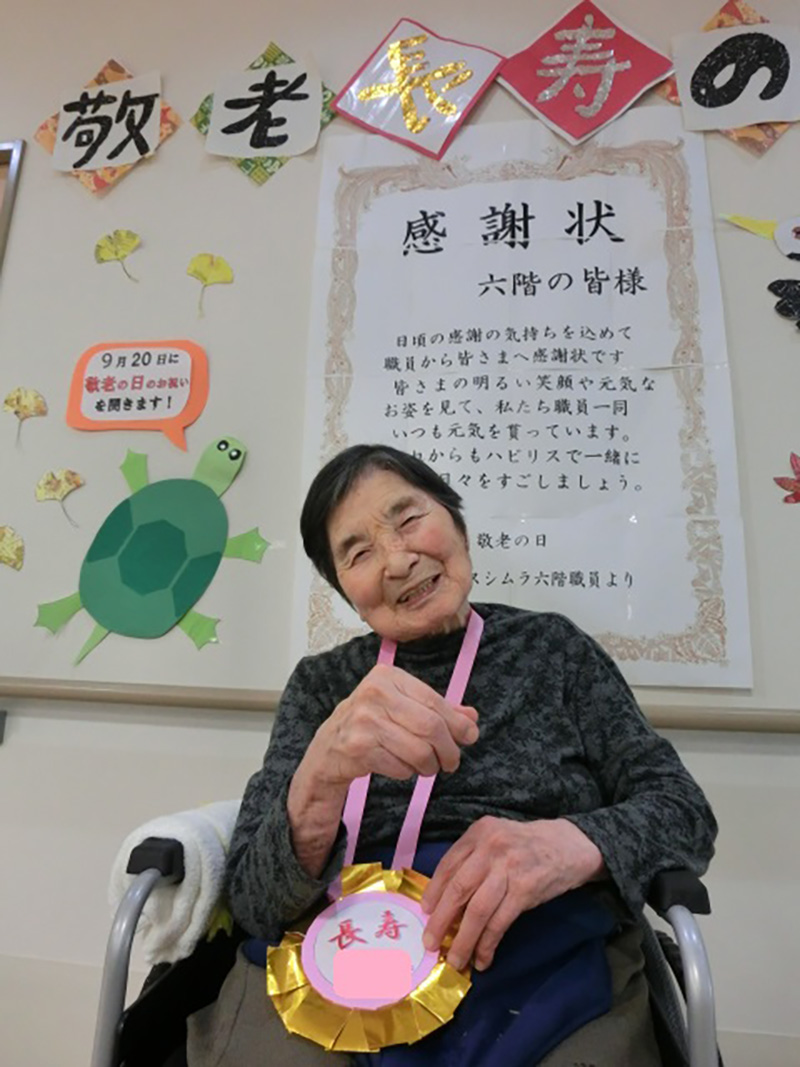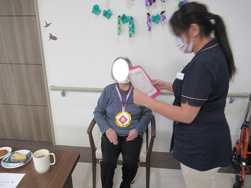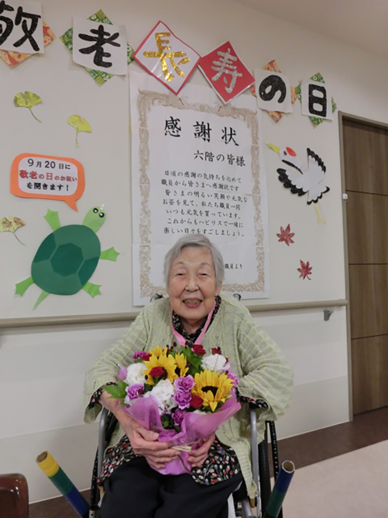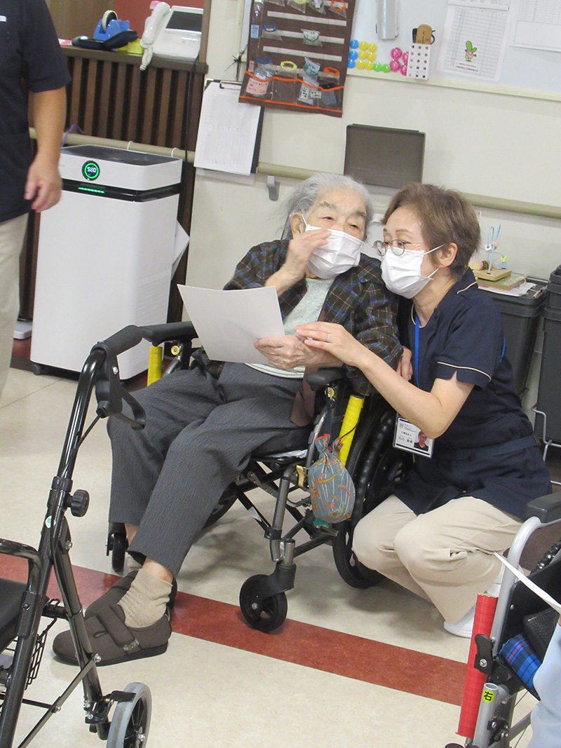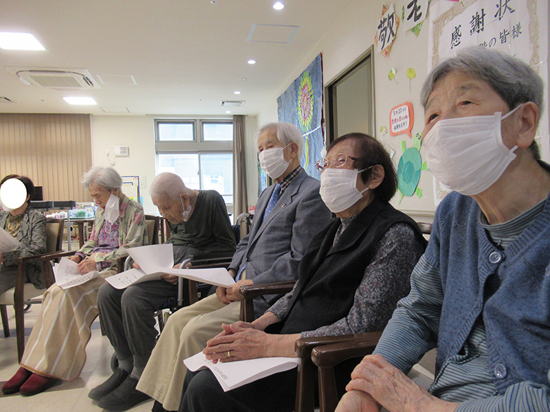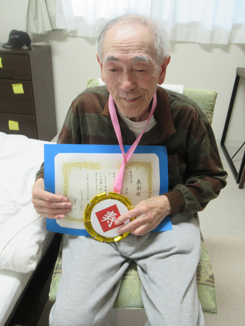 | 9月16日の敬老会では、スタッフから日頃の感謝をこめて、感謝状をお渡ししました。 | |
