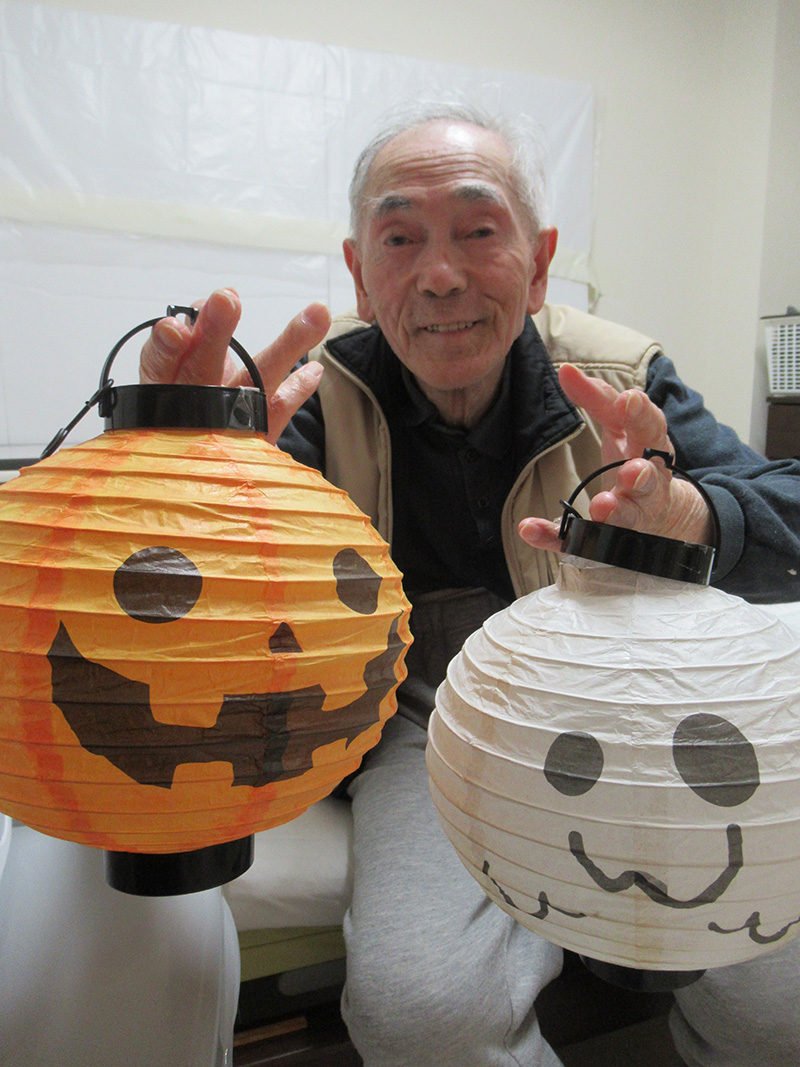 | 10月の壁面飾りはハロウィンです。大きなかぼちゃやおばけ提灯も登場しています。 | |