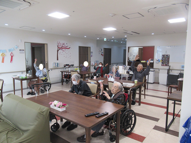 | 毎日共有スペースで楽しく体操していただいております。 | |
