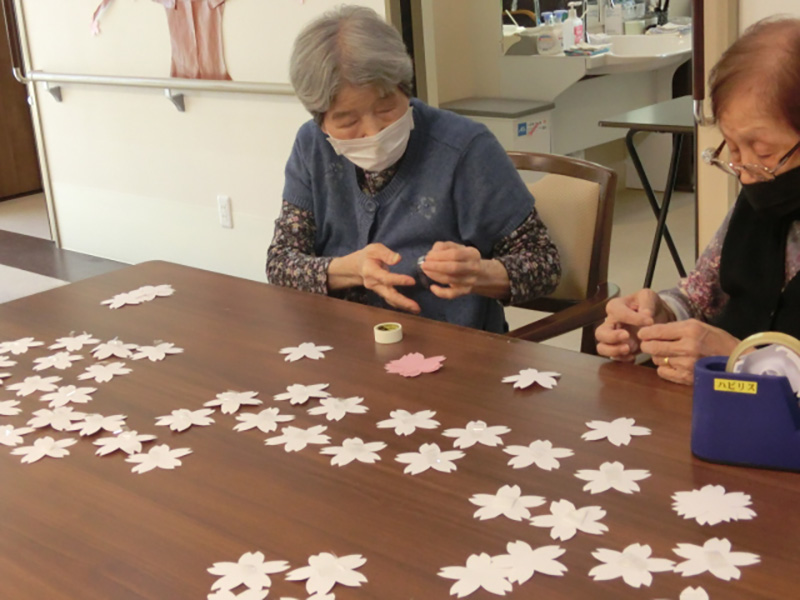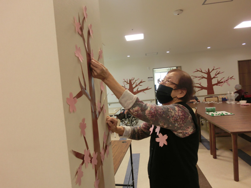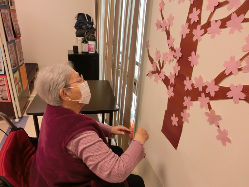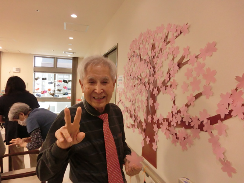 | 今月も春らしく皆様と楽しみながらフロアの飾り付けをしました。 お花見の季節となりご家族の方と面会時にお散歩に行かれる入居者様も いらっしゃいます。 フロアでも少しずつ飾り花により、満開のお花を咲かせています。 | |
