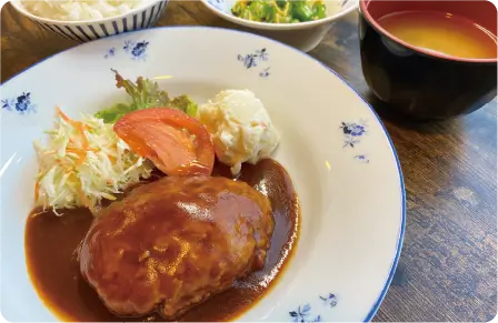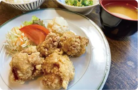 日替わり定食・唐揚げ定食・ハンバーグ定食・カレー・かつ丼・麺類など様々なメニューをご用意してお待ちしております。