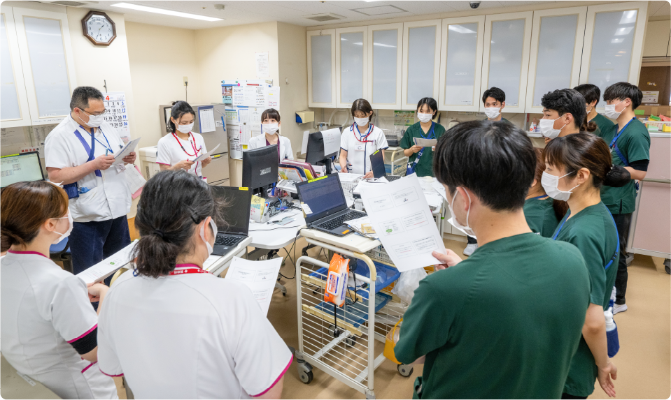 一般病棟では、身体の状態が急激に悪化した患者様に対し、密度の濃い治療を集中的に行い、状態の早期回復に努めます。また当院は、第二次救急指定病院・病院群輪番制病院の役割を担っています。そのため、1人でも多くの患者様を受け入れるよう、状態が改善し安定した患者様に対して、他の病床および病棟、他の医療施設やご自宅で療養していただくことがあります。