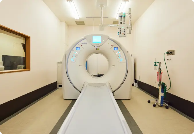 CT検査とは、X線を使って身体のさまざまな角度の断面を画像化する検査です。頭から足先まで、骨、臓器、血管など、病態に合わせた断面像を映し出すだけでなく、3D表示させ立体的に確認することもできます。検査部位や目的によって検査の時間は異なりますが、1回の撮影時間は数秒程度なので、体調不良の方や骨折した方などでも大きな負担なく詳細な画像を得ることができます。低被ばくで、診断に役立つ画像の、迅速な提供。常に意識し取り組んでいます。