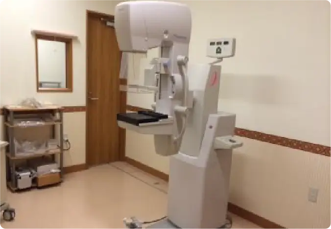 乳房のX線写真のことで、マンモグラフィと呼ばれています。乳房は柔らかい組織でできているため、専用の装置を使って撮影します。圧迫板で乳房を平らに引き延ばすことにより、腫瘤や微細な石灰化などを観察しやすくします。当院では、女性の検診マンモグラフィ撮影認定技師がすべての撮影を担当しております。