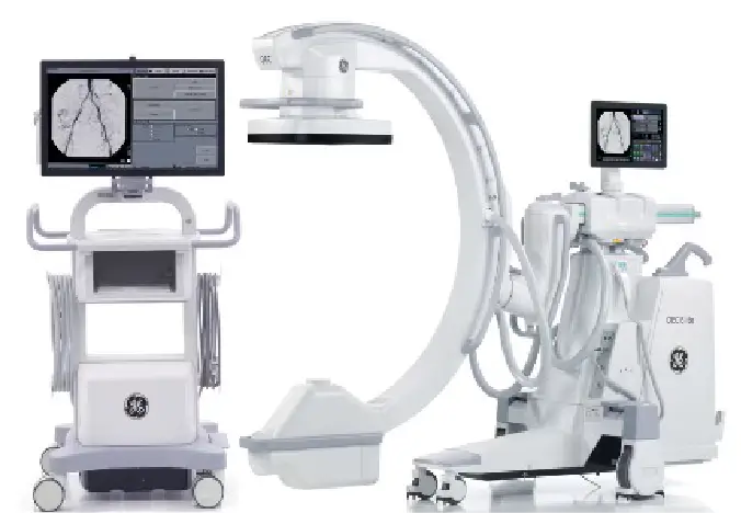 移動型術中透視装置。整形外科手術において、骨折部位や手術器具の位置を確認するために使用しています。