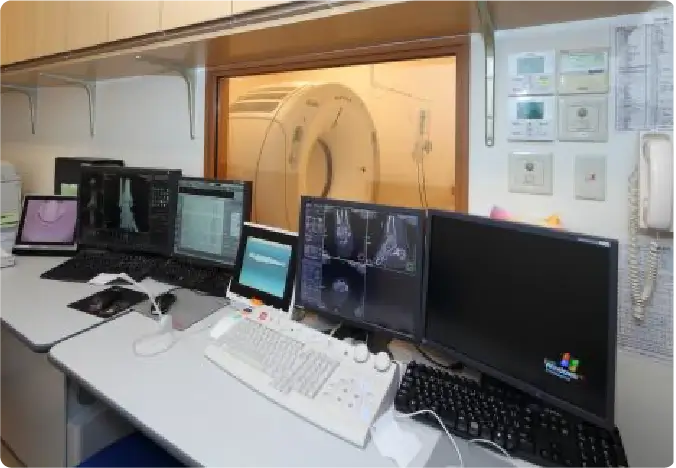 MRIは強力な磁石と電波を用いて、身体のさまざまな角度の断面を画像にする装置です。X線を用いないため、放射線被ばくのリスクなく検査が行えます。
