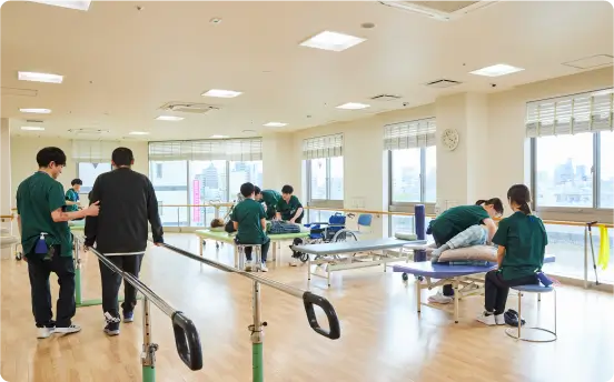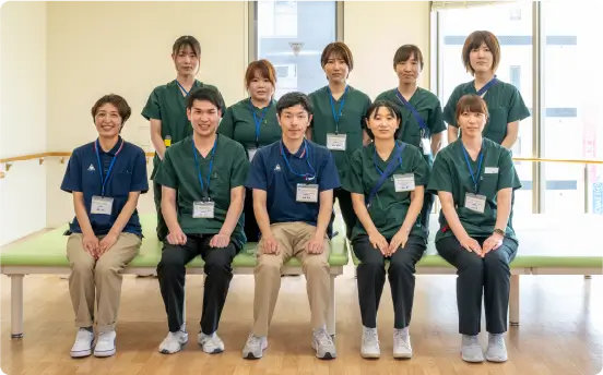 理学療法では、患者さまの状態に応じて早期から介入し、患者さまそれぞれが望む「自分らしさ」の再獲得へ向け、個別性を重視して訓練を行います。当院の特徴としては、スポーツ疾患から高齢者の4大骨折まで患者層が多様であり、それぞれの疾患や状態に対応できるよう、努めています。
