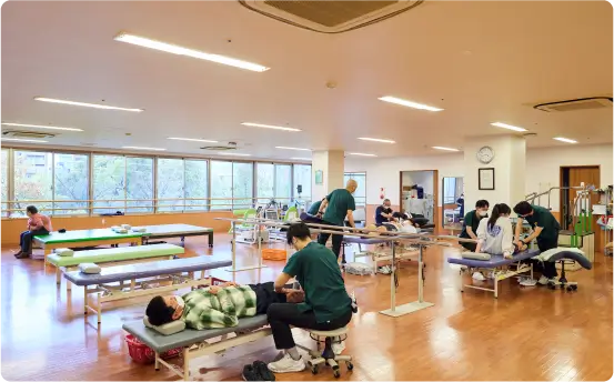 当院を利用する患者さまは小児から高齢者まで多様であり、幅広い患者層に対応する必要があります。疾患としては、入院リハビリでは高齢者に多い4大骨折や、変性疾患(変形性関節症、肩関節腱板損傷、脊椎症など)の術後、事故などの外傷後が多く、一部脳卒中や呼吸器・循環器疾患の患者さまへ対応しています。外来リハビリでは、スポーツ疾患、生活習慣に伴う整形外科疾患(肩関節周囲炎、変形性関節症、腰痛症など)の患者さまを対応することが多いです。