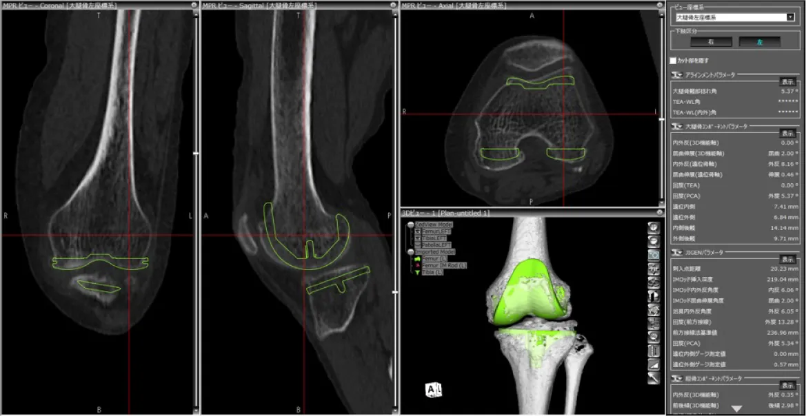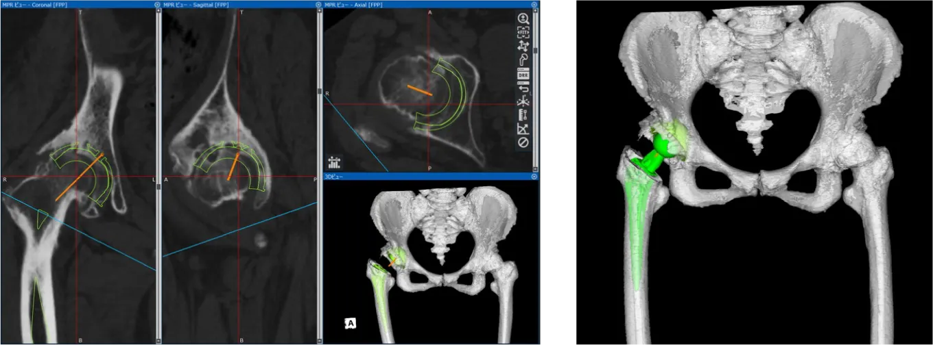 当院では術前のCT画像をコンピューターに取り込み、特別なソフトウエアを使用して、手術を受けられる方個々の骨の形に合うように手術前計画を立てています。