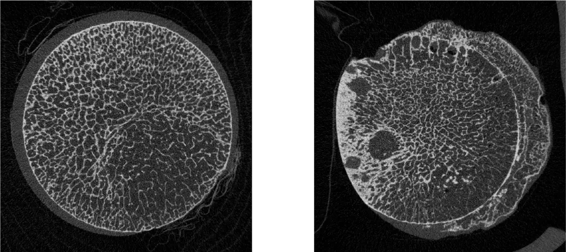 また、海綿骨だけでなく、皮質骨の微細構造を継時的に観察できるHR-pQCT(世界で約100台、日本では長崎大学に次ぐ2台目)が使用可能です。