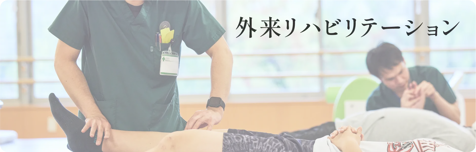 外来リハビリテーションとは、在宅生活を送りながらも通院可能な方に対して提供するリハビリです。日常生活で不自由を感じている方、退院後も必要に応じて、基本的動作や日常生活動作の改善だけではなく、早期の社会復帰・競技復帰を目指します。